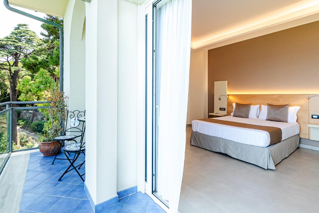 Il punto di forza è l’ampio balcone con vista mare frontale, perfetto per godersi una colazione con il rumore delle onde o rilassarsi al tramonto immersi in un panorama mozzafiato. Il bagno di design con doccia emozionale regala momenti di puro benessere, completato da un set cortesia premium con accappatoi, pantofole e prodotti di alta qualità.